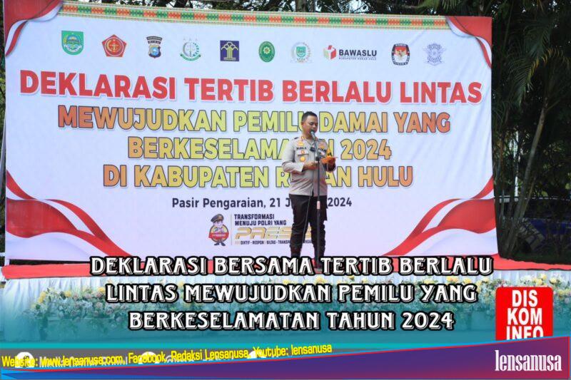 ROKAN HULU | LENSANUSA.COM – Bupati Rokan Hulu(Rohul) H.Sukiman yang diwakili Kadis Perhubungan Hadiri Deklarasi tertib berlalulintas mewujudkan Pemilu Damai yang Berkeselamatan tahun 2024 di Kabupaten Rokan Hulu (Rohul) Minggu (21/1/2024) pukul 09.00 Wib, di Komplek Pemda Rohul, yang dipimpin Kapolres AKBP Budi Setiyono SIK MH