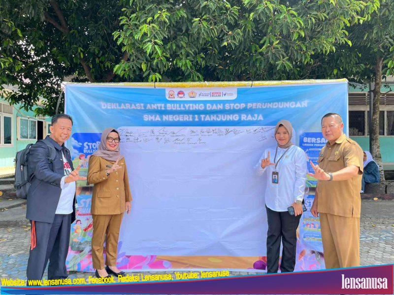 Deklarasi anti bullying atau perundungan ini, dilakukan siswa baru pada momen Masa Pengenalan Lingkungan Sekolah (MPLS) SMAN 1 Tanjung Raja.