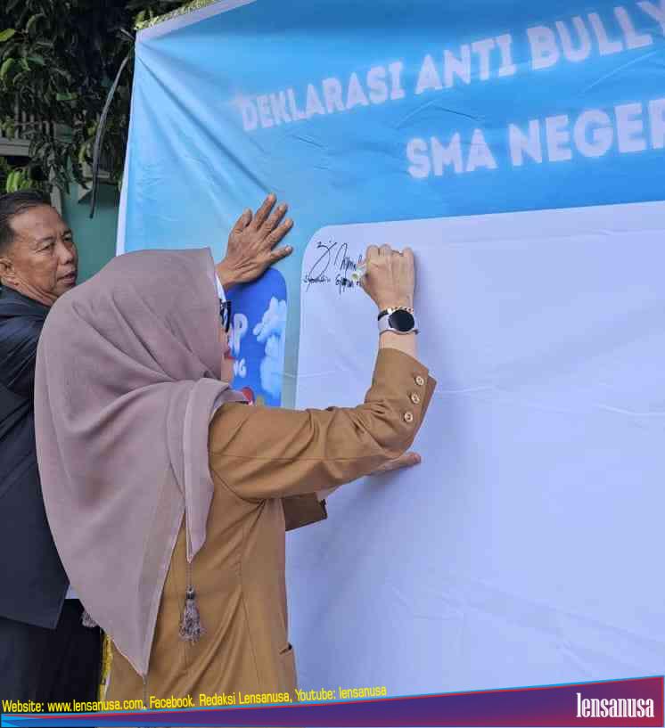 OGAN ILIR | Lensanusa.com – Ratusan siswa baru SMA Negeri 1 Tanjung Raja Kabupaten Ogan Ilir, mendeklarasikan anti bullying atau perundungan.