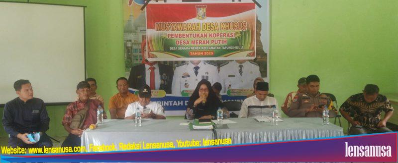 TAPUNG,KAMPAR | LENSANUSA.COM Bertempat dikantor desa senama nenek kecamatan Tapung hulu, kabupaten Kampar diadakan musyawarah untuk pembentukan koperasi merah putih . Jum’at (11/4/2025).