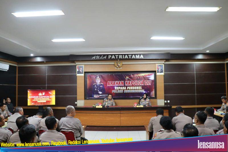 GUNUNGKIDUL | LENSANUSA.COM. – Kapolda DIY Irjen Pol Anggoro Sukartono, S.I.K., memberikan arahan kepada jajaran Personel Polres Gunungkidul dalam rangka persiapan Operasi Lilin Progo 2025 untuk menyambut Natal 2025 dan Tahun Baru 2026. Kegiatan arahan berlangsung di Aula Patriatama, Mapolres Gunungkidul, pada Selasa (2/12/2025).