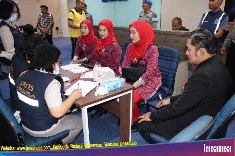 DELI SERDANG | LENSANUSA.COM – Menghadapi Nataru 2024 dalam rangka kegiatan Operasi Lilin Toba Tahun 2023, Polresta Deli Serdang bekerjasama dengan OIC Bandara Kualanamu , AVSEC Bandara Kualanamu, dan BNN Deli Serdang, menggelar test urine kepada Pilot, Co-pilot, Pramugari maskapai penerbangan dan Masinis Kereta Api Indonesia di Bandara Internasional Kualanamu Deli Serdang, pada Sabtu 30 Desember 2023.