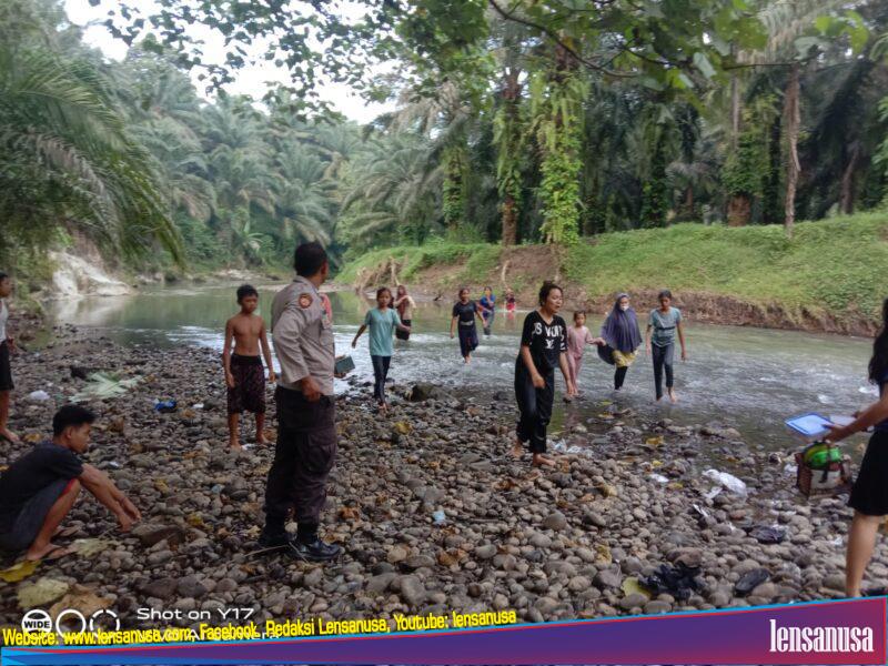 LANGKAT | LENSANUSA.COM – Personel Polsek Kuala Resort Langkat mengevakuasi Safira Kirana Br Siregar (12) seorang siswi SMP YPHB Kuala di Sungai Begumit Ling IV Bela Rakyat Baru Kel Bela Rakyat Kec Kuala, Jumat (3/11/2023) pukul 15.30 WIB.