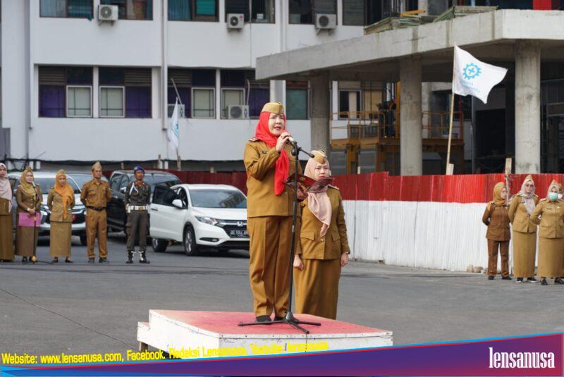 Walikota Bandar Lampung Hj. Eva Dwiana menjadi Pembina pada apel mingguan di lingkungan Sekretariat Pemerintah Kota Bandar Lampung bertempat Di Halaman Pemkot Bandar Lampung, senin (09/10/2023).