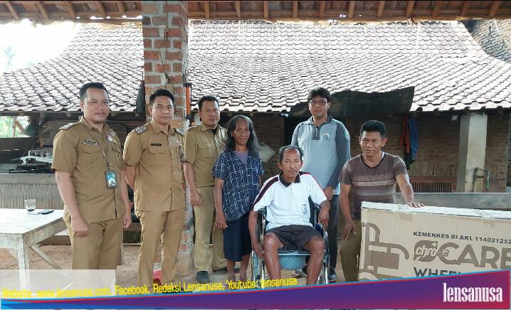 Pemerintah Kabupaten Pringsewu melalui Dinas Sosial serahkan 03 bantuan kursi roda kepada warga Pekon Nusawungu Kecamatan Banyumas, Pringsewu, pada Rabu (12/12/23).
