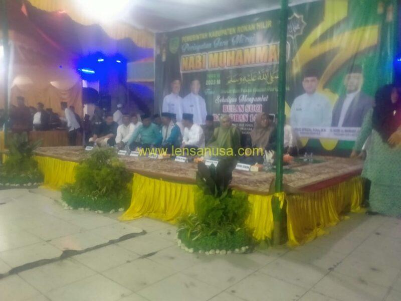 Dengan bertemakan “Shalat dan Puasa Ibadah Paripurna” peringatan Isra Mi’raj itu dihadiri langsung Bupati Rohil Afrizal Sintong SIP, Wabup Rohil H Sulaiman SS MH, Sekda Rohil H Fauzi Efrizal, Pasiter Kodim 0321 Rohil Lettu Inf Sudarwanto, Ketua PKK Sanimar Afrizal, para kepala OPD, tokoh agama, tokoh pemuda, para santri dari beberapa Ponpes serta ribuan masyarakat.