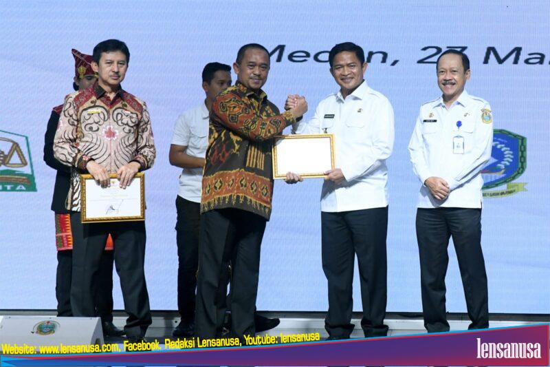 MEDAN  | LENSANUSA.COM – Pemerintah Provinsi (Pemprov) Sumatera Utara (Sumut) mendapat penghargaan kategori Sertifikasi dengan Luasan Terbanyak, dari Komisi Pemberantasan Korupsi (KPK). Penghargaan tersebut diserahkan Deputi Bidang Koordinasi dan Supervisi KPK RI Didik Agung Widjanarko kepada Penjabat (Pj) Gubernur Sumut Hassanudin di Aula Tengku Rizal Nurdin, Kantor Gubernur, Jalan Pangeran Diponegoro Medan, Rabu (27/3).