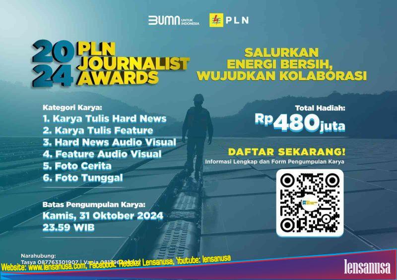 JAKARTA | Lensanusa.com – PT PLN (Persero) mengajak para insan Jurnalis untuk dapat berpartisipasi dalam ajang PLN Journalist Award (PJA) 2024. Mengusung tema “Salurkan Energi Bersih, Wujudkan Kolaborasi”, periode pendaftaran PJA 2024 akan ditutup pada 31 Oktober 2024.
