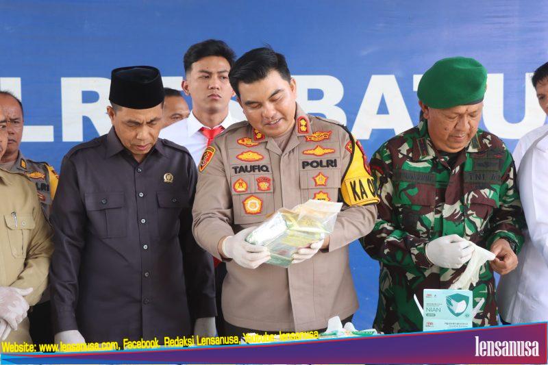 Konferensi pers yang dipimpin oleh Kapolres Batu Bara, AKBP Taufik Hidayat Tayeb, S.H., S.I.K., M.M., dihadiri oleh berbagai pihak, termasuk Kasat Narkoba AKP Ferry Kusnadi, S.H., M.H., unsur TNI, Dinas Kesehatan, Ketua DPRD Batu Bara, serta awak media.