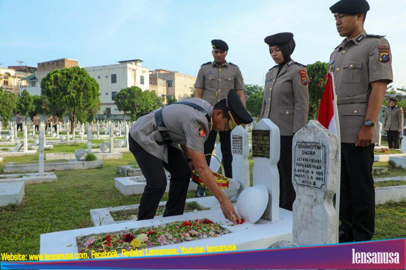 “Ziarah ini bukan sekadar tradisi, tetapi bentuk penghormatan dan penghargaan kami kepada para pahlawan bangsa. Semangat juang mereka menjadi inspirasi bagi kami, Polri, untuk terus mengabdi kepada masyarakat, bangsa, dan negara,” ujar Brigjen Pol Rony Samtana di sela kegiatan.