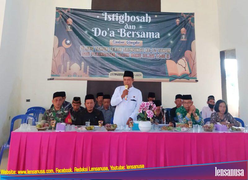 PRINGSEWU| LensaNusa.com – Pemerintah Pekon Sriwungu, Kecamatan Banyumas, Kabupaten Pringsewu Lampung peringati hari ulang tahun yang ke- 73, dengan menggelar acara peringatan tahun baru Islam serta doa bersama. Acara berlangsung di balai pekon setempat, pada Jum’at (12/7/24).