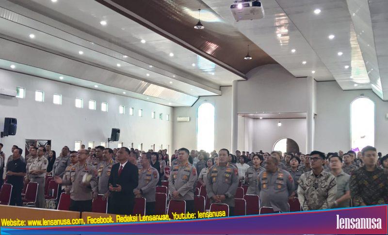 Ibadah yang dipimpin oleh Pdt. John Saragih itu berlangsung khidmat dan penuh kekhusyukan. Hadir pula para Pejabat Utama (PJU) Polda Sumut yang bersama-sama mengangkat doa untuk keamanan dan kedamaian bangsa Indonesia.