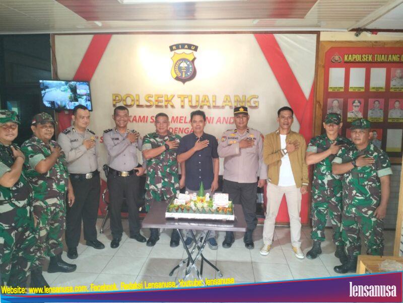 SIAK | LNC – Sinergitas TNI-POLRI, Koramil 04/ Tualang memberikan tumpeng kepada personil Polsek Tualang dalam rangka Hari Bhayangkara Ke 77 tepatnya tanggal 1 Juli 2023 di Mako Polsek Tualang. Dalam hal ini Koramil 04 / Tualang diwakili oleh Pelas Ramli