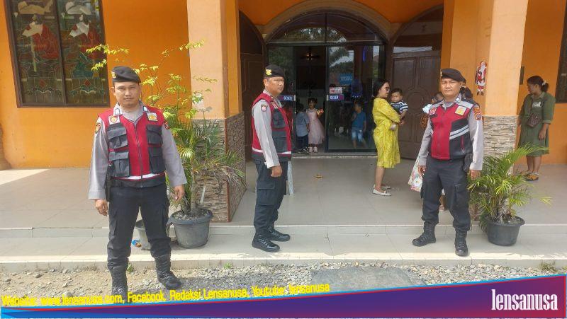 Personil Sat Samapta Polres Langkat laksanakan pengamanan dan patroli di gereja.