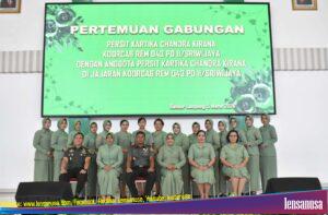 “Jadikan acara ini sebagai ajang silaturahmi dan media berbagi informasi sesama anggota persit kartika chandra kirana, karena sebagai anggota Persit Kartika Chandra Kirana, memiliki beberapa peran, yaitu sebagai pendamping suami, ibu rumah tangga, sekaligus anggota organisasi dan masyarakat biasa,“ tutur Danrem.