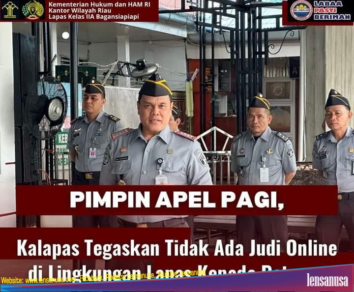 ROKAN HILIR | LENSANUSA.COM – Kepala Lembaga Pemasyarakatan (Lapas) Kelas IIA Bagansiapiapi, Ika Prihadi Nusantara tegaskan larangan keterlibatan Judi Online bagi jajaran Pegawai Lapas kelas II Bagansiapiapi, pada pelaksanaan Apel Pagi Pegawai, Selasa (2/7/2024)
