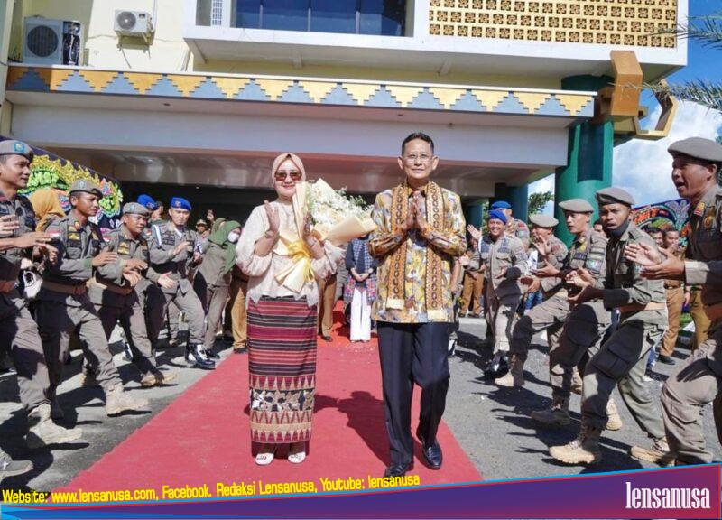 Selepas acara pisah sambut, dengan diantar Pj Bupati Pringsewu Marindo Kurniawan dan Ketua TP-PKK beserta jajaran pemerintah daerah dan forkopimda, Adi Erlansyah dan Rusdiana kemudian memasuki kendaraan untuk selanjutnya meninggalkan komplek perkantoran Pemkab Pringsewu. (Iyan/ Ant).