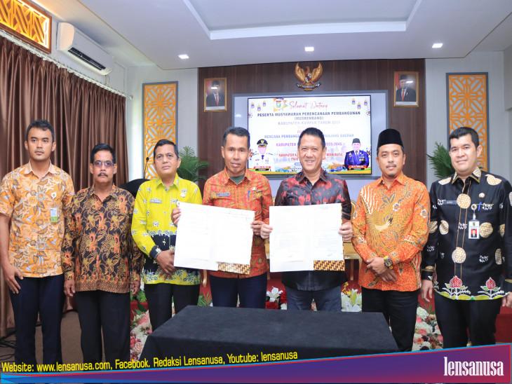 Kemudian acara di lanjutkan penandatanganan berita acara hasil kesepakatan Musrembang RPJPD Kabupaten Kampar tahun 2025-2045. (Adv)