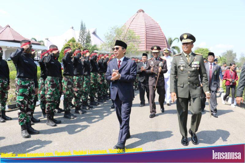 Bertindak selaku Komandan Upacara, Komandan Batalyon Infanteri 743/PSY Letkol Inf. Andri Karsa, S.Sos., M.Han. dan sebagai Inspektur Upacara Komandan Korem 161/Wira Sakti Brigjen TNI Febriel Buyung Sikumbang, S.H., M.M.