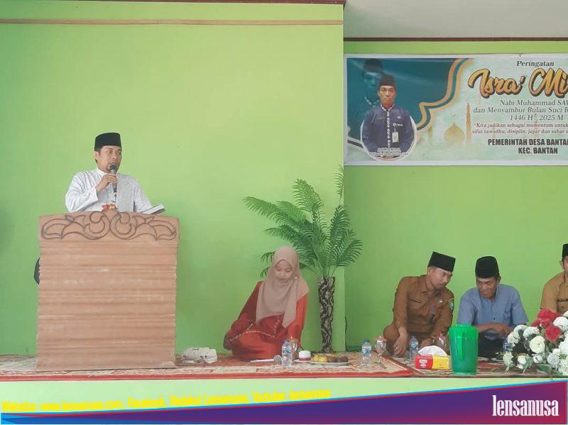 LENSANUSA.COM | BANTAN – Pj Kepala Desa Bantan Sari Gunondo menghadiri Peringatan Isra’ Wal Mi’raj Nabi Muhammad SAW Pemerintah Desa Bantan Sari Tahun 1446 H/ 2025 M bertempat di Pendopo Kantor Desa Bantan Sari Kecamatan Bantan, Selasa (11/02/2025)