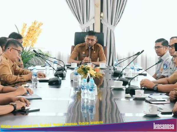 KUANSING | LENSANUSA.COM – Penjabat sementara (Pjs) Bupati Kuantan Singingi (Kuansing) drg. Sri Sadono Mulyanto, M. Han menerima kunjungan dari Jasa Raharja cabang Riau Provinsi Riau, Senin (04/11) Siang, di Ruang Rapat Kantor Bupati Kuansing.