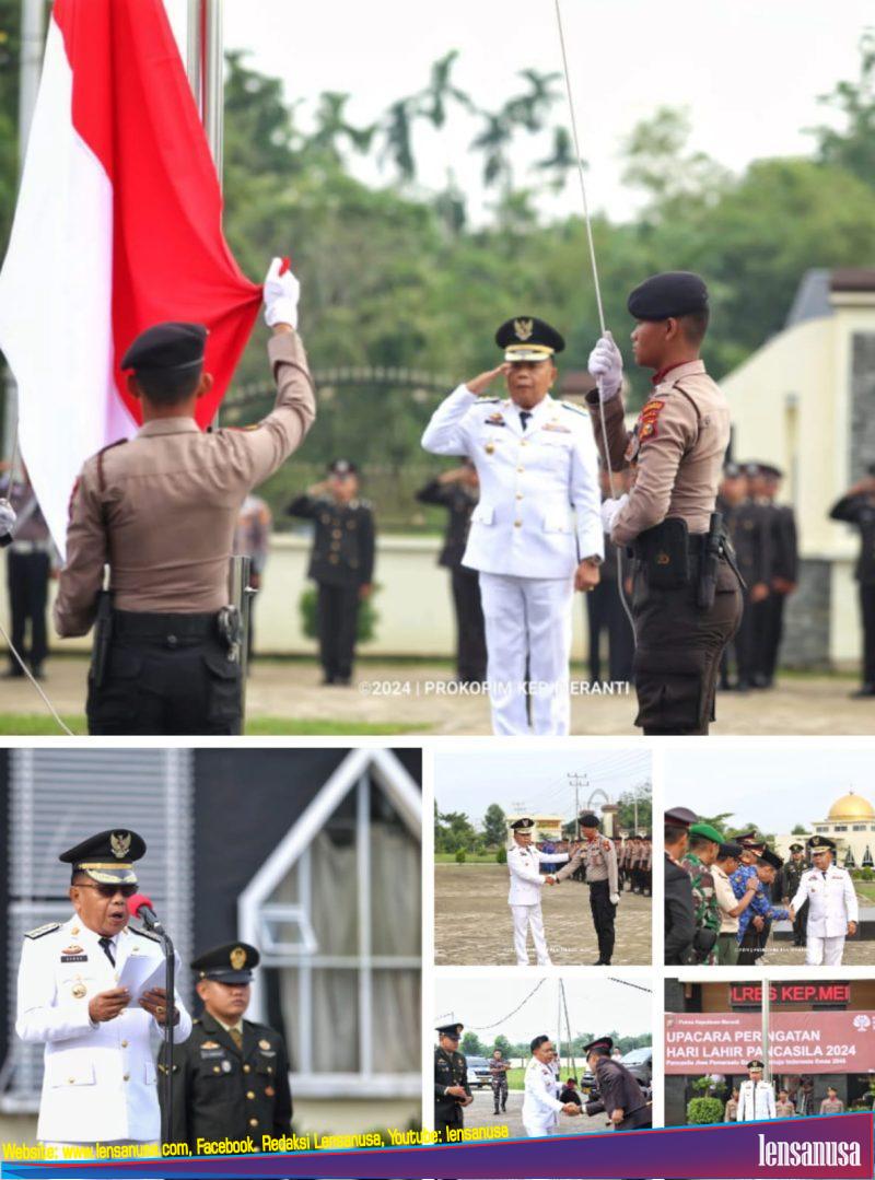 LENSANUSA.COM | MERANTI – Pelaksana tugas (Plt) Bupati Kepulauan Meranti AKBP (Purn) H. Asmar memimpin upacara peringatan Hari Lahir Pancasila di Halaman Mako Polres Kepulauan Meranti, Sabtu (1/6/2024).