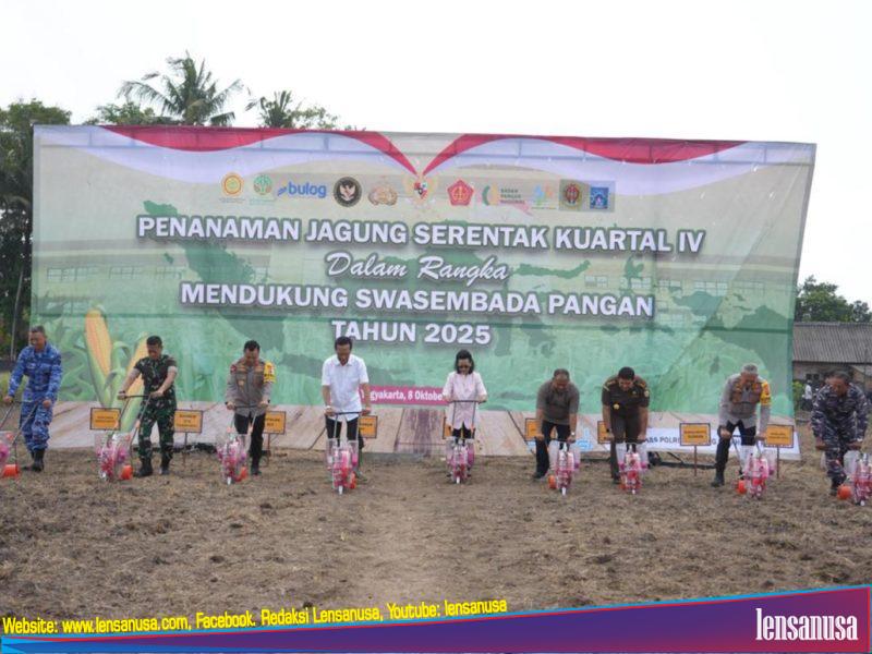 YOGYAKARTA | LENSANUSA.COM. – Dalam rangka mendukung program Swasembada Pangan Tahun 2025, Polda DIY melaksanakan Penanaman Jagung Secara Serentak Kuartal IV, bertempat di lahan Sultan Ground, Dusun Pirakbulus, Sidomulyo, Godean, Sleman, pada Rabu (8/10/2025).