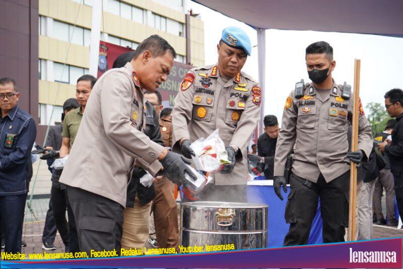 Pemusnahan yang dilaksanakan di halaman belakang Mapolda Riau, Jalan Patimura, Kota Pekanbaru ini di Pimpin langsung oleh Wakapolda Riau, Brigjen Pol Kasihan Rahmadi.