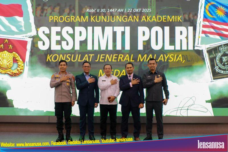 MEDAN | LENSANUSA.COM – Kepolisian Daerah Sumatera Utara (Polda Sumut) menerima kunjungan Program Lawatan Akademik (Overseas Study Visit – KKLN) peserta Sespimti Polri Dikreg ke-34 Tahun 2025 di Konsulat Jenderal Malaysia di Medan, Rabu (22/10).