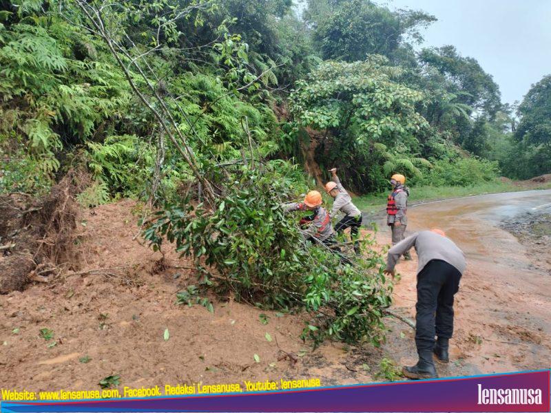 – Pengamanan lokasi rawan dan pengaturan lalu lintas di jalur yang tertutup longsor.