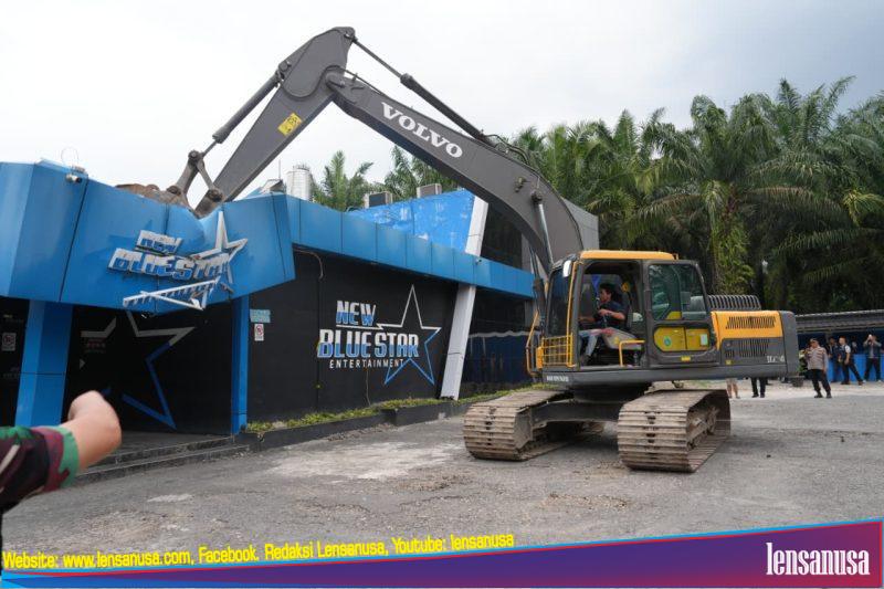 Sebelum alat berat mulai bekerja, Kasatpol PP Kabupaten Langkat membacakan putusan resmi bahwa New Blue Star tidak memiliki Izin Mendirikan Bangunan (IMB), Tanda Daftar Usaha Pariwisata (TDUP), dan Persetujuan Bangunan Gedung (PBG). Selain itu, lokasi ini telah lama menjadi sorotan karena diduga kuat menjadi pusat peredaran narkotika.
