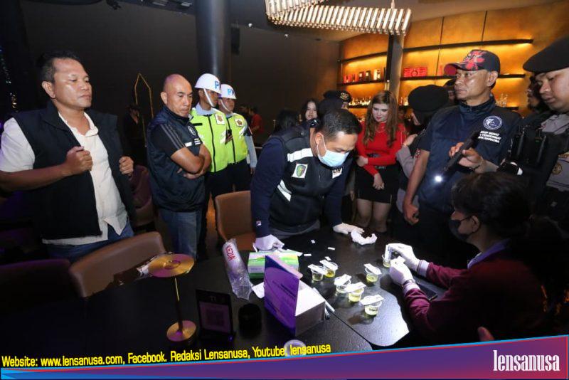 Di lokasi, petugas melakukan pemeriksaan terhadap pengunjung serta memantau area hiburan malam secara menyeluruh.