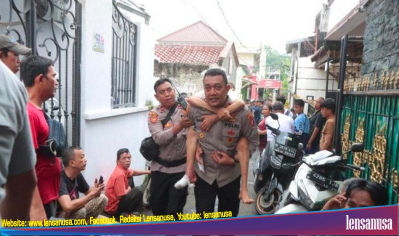 Polisi Gendong Lansia Terjebak Banjir di Cawang