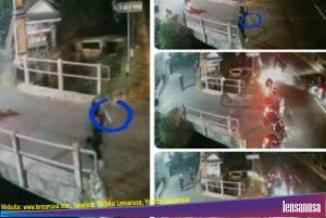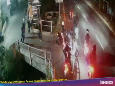 Salah satu motor yang dikendarai tiga orang diduga menjadi target serangan. Mereka terlihat panik dan langsung kabur dari lokasi usai menyadari jumlah mereka kalah dan lawan membawa senjata tajam.