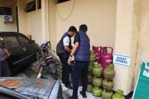 Dalam penggerebekan tersebut, polisi menyita sejumlah barang bukti, di antaranya 5 tabung gas warna pink (12 kg), 11 tabung gas melon (3 kg), 3 unit regulator yang digunakan untuk menyuntik gas, 5 ember warna hitam dan 1 unit sepeda motor dan keranjang (kronjot).