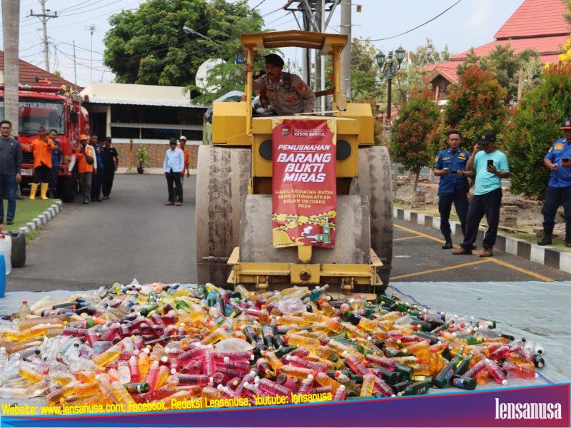 BANTUL | LENSANUSA.COM. – Minuman keras (miras) berbagai merek dari hasil KRYD Polres Bantul, dimusnahkan, Selasa (22/10/2024). Kegiatan pemusnahan tersebut dilaksanakan di Mapolres Bantul dan dihadiri jajaran Forkopimda Kabupaten Bantul.