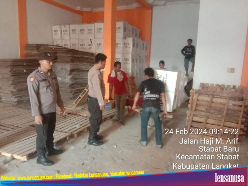LANGKAT | LENSANUSA.COM – Personil Polres Langkat laksanakan pengawalan Ketat pergeseran kotak suara dari Kecamatan/PPK Setabat hingga Gudang KPU jln. H. M Arif Kecamatan Stabat kabupaten Langkat, untuk memastikan Logistik KPU Tetap aman dan baik, Sabtu 24 Februari 2024 pukul 80.00 wib.