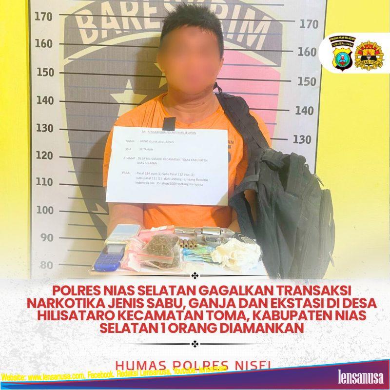 NIAS SELATAN | LENSANUSA.COM – Satuan Reserse Narkoba (Sat Resnarkoba) Polres Nias Selatan berhasil menggagalkan transaksi narkotika di Desa Hilisataro Induk, Kecamatan Toma, Kabupaten Nias Selatan, Kamis (6/3/2025).