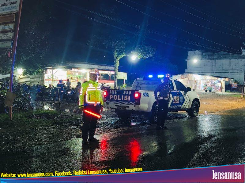 PADANG LAWAS | LENSANUSA.COM – Personil Polres Padang Lawas melaksanakan “Patroli Blue light”, atau patroli dengan menyalakan lampu rotator berwarna biru di Kota Sibuhuan , malam hingga dini hari, dalam rangka menciptakan situasi aman dan kondusif sebelum Pelantikan Bupati Terpilih Kabupaten Padang Lawas, Jum’at,(14/02/2025) malam