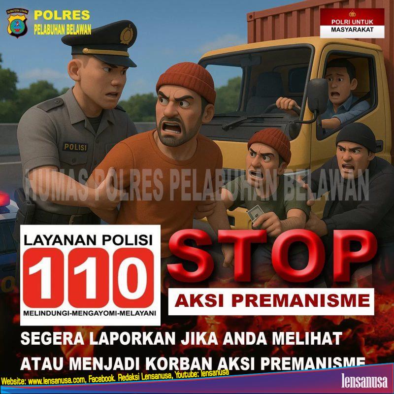 BELAWAN | LENSANUSA.COM — Dalam upaya menciptakan situasi kamtibmas yang kondusif, Polres Pelabuhan Belawan mengimbau masyarakat untuk tidak ragu melaporkan setiap aksi premanisme yang terjadi di wilayah hukumnya. Masyarakat diminta segera menghubungi Call Center 110 milik Polri jika melihat atau menjadi korban tindak premanisme.