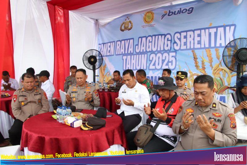 Kegiatan panen raya berlangsung dengan lancar dan diakhiri dengan sesi foto bersama serta peninjauan langsung hasil panen jagung oleh Kapolres dan tamu undangan.