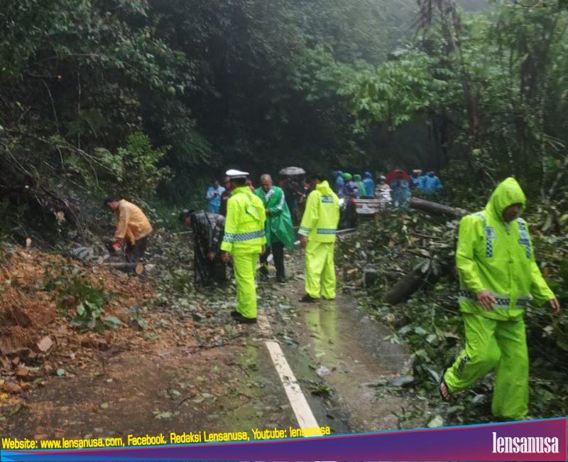 Sejumlah ruas jalan nasional sempat tertutup total, namun beberapa titik sudah berhasil dibuka setelah alat berat diturunkan sejak dini hari.
