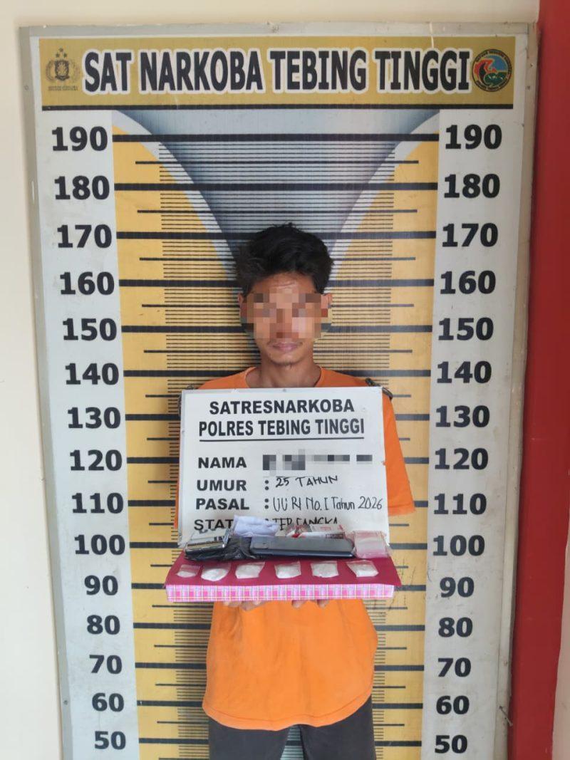 TEBING TINGGI | LENSANUSA.COM – Sat Resnarkoba Polres Tebing Tinggi berhasil menggagalkan transaksi narkotika jenis sabu. Seorang pemuda berinisial MJS (25) diamankan bersama barang bukti sabu dengan total berat 25,07 gram.