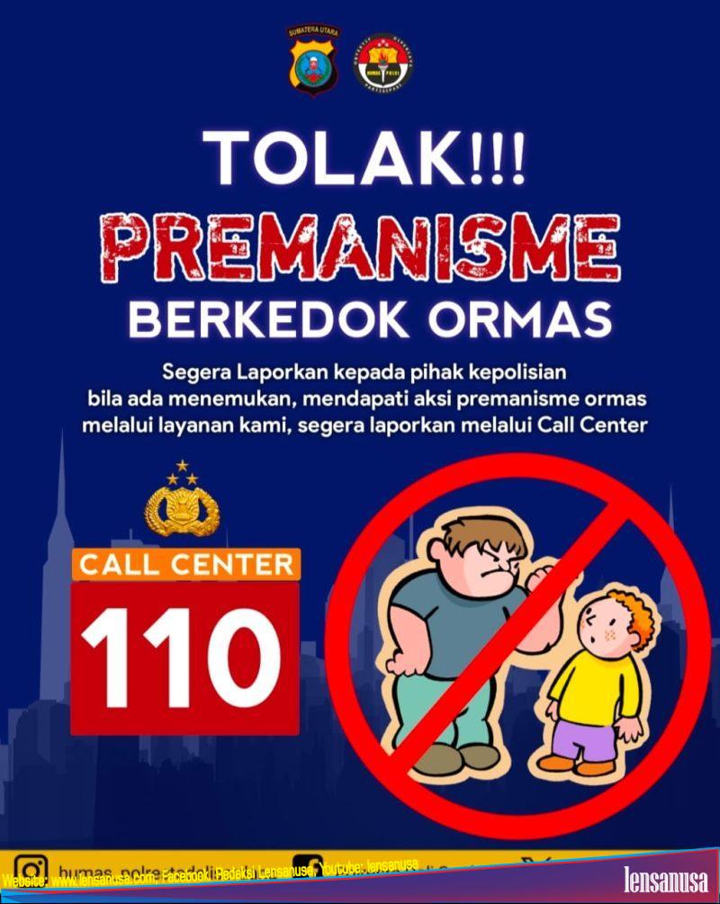Polri mengajak seluruh elemen masyarakat untuk berperan aktif dalam menjaga keamanan dan ketertiban. Jika menemukan atau menjadi korban tindakan premanisme, segera laporkan kepada pihak kepolisian agar dapat segera ditindaklanjuti. (Dilla)