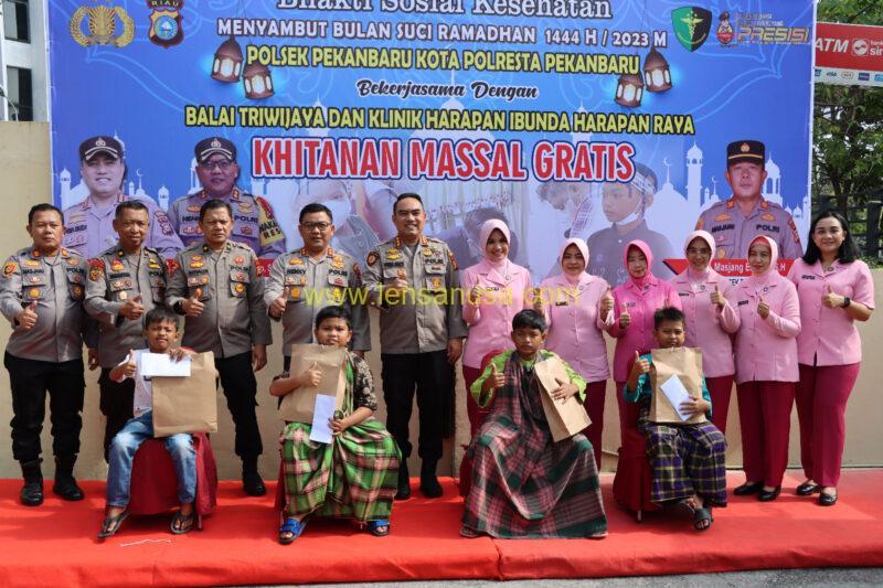 PEKANBARU | LENSANUSA.COM – Dalam rangka Bhakti Sosial Kesehatan menyambut Bulan Suci Ramadan 1444 H – 2023 M, Polsek Pekanbaru Kota Polresta Pekanbaru menggelar acara Khitanan Massal Gratis di Mapolsek Pekanbaru Kota, Jum’at (17/3/2023) pagi.