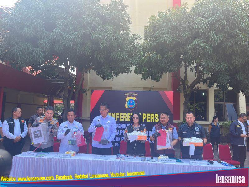 MEDAN | LENSANUSA.COM — Polda Sumatera Utara bersama Kementerian Koordinator Bidang Politik, Hukum, dan Keamanan RI serta Bareskrim Polri menggelar konferensi pers pengungkapan dua kejahatan serius yang marak terjadi: Tindak Pidana Perdagangan Orang (TPPO) dan peredaran narkoba yang memanfaatkan modus pengiriman Pekerja Migran Indonesia (PMI) ilegal.