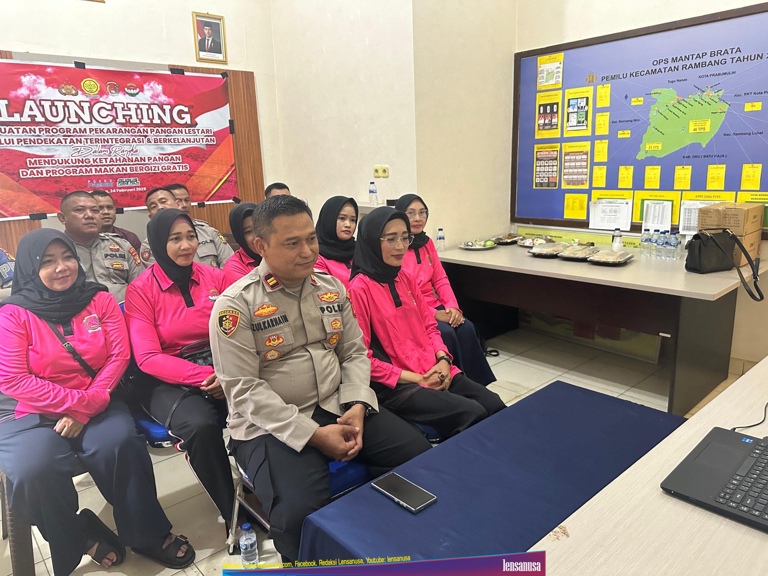 MUARA ENIM | Lensanusa.com – Polsek Rambang, Polres Muara Enim ikut launching secara serentak program Pekarangan Pangan Lestari (P2L) di Kebun Pangan Lestari Mapolsek Rambang. Senin (24/2/2025)