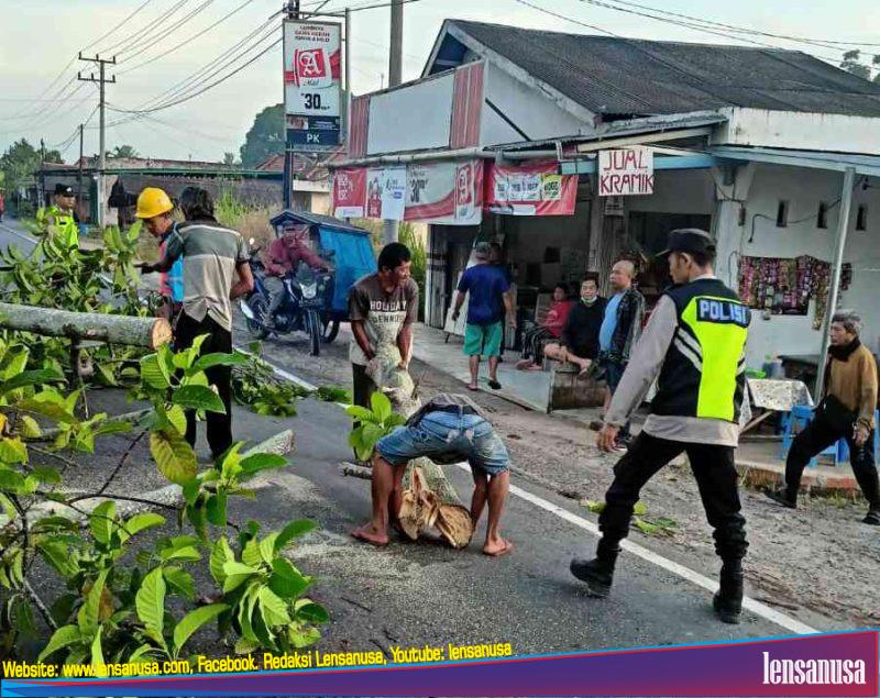 Sedikitnya tujuh personel Polsek Tanjung Raja Polres Ogan Ilir, diterjunkan untuk mengamankan lokasi pohon tumbang di Jalan Lintas Timur Desa Talang Balai Baru II tersebut.
