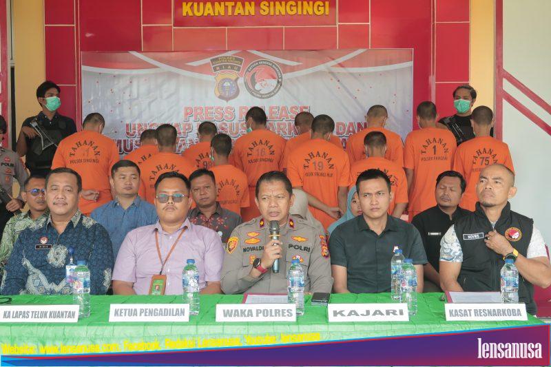 Kapolres Kuantan Singingi AKBP Angga F. Herlambang, S.I.K., S.H., melalui Wakapolres Kuansing KOMPOL Novaldi, S.Sos., M.Si menegaskan bahwa Polres Kuansing tidak akan memberi ruang bagi peredaran narkoba di Kabupaten Kuansing. Pihaknya akan terus meningkatkan patroli, pengawasan, dan penegakan hukum terhadap para pelaku penyalahgunaan narkotika. “Kami berkomitmen penuh untuk memberantas peredaran narkoba di Kuansing. Kami juga mengajak masyarakat untuk berperan aktif dalam memberikan informasi terkait peredaran narkoba agar tindakan pencegahan dan penindakan bisa lebih maksimal,” ujar Wakapolres.