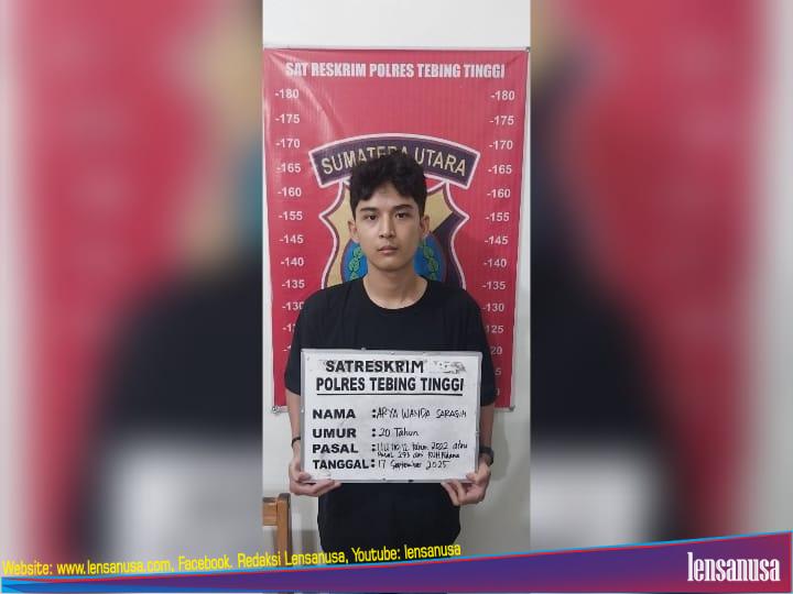 TEBING TINGGI | LENSANUSA.COM – Tim Sat Reskrim Polres Tebing Tinggi berhasil menangkap seorang pemuda berinisial AWS alias Arya (20), warga Desa Suka Dame, Kecamatan Sei Bamban, Kabupaten Serdang Bedagai. Ia diamankan atas dugaan tindak pidana kekerasan seksual terhadap seorang perempuan di sebuah hotel kawasan Tebing Tinggi.